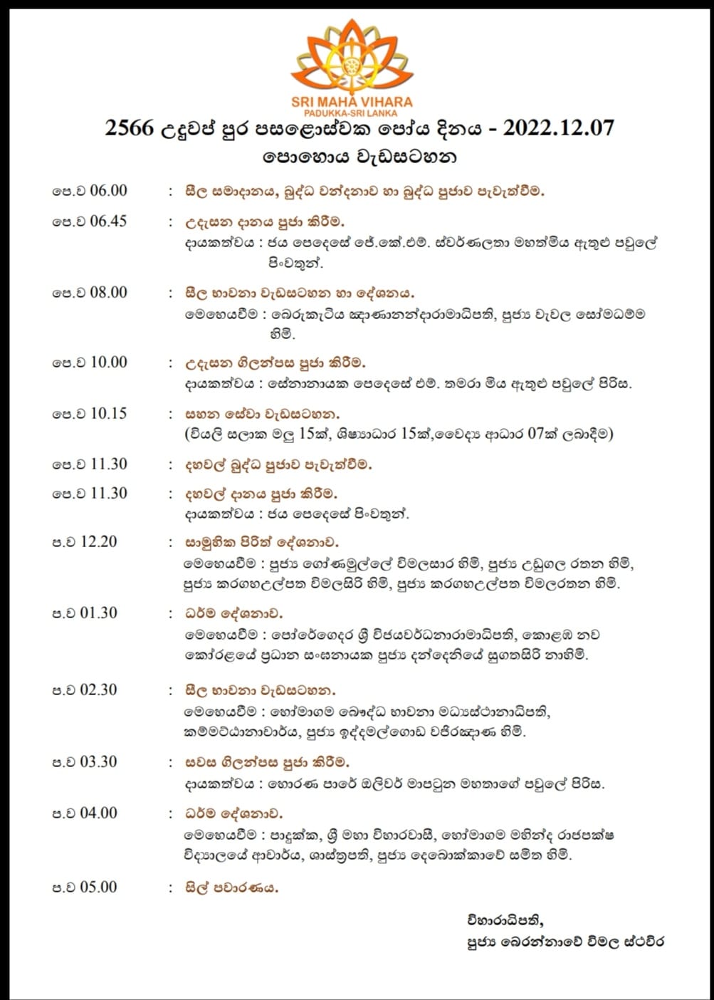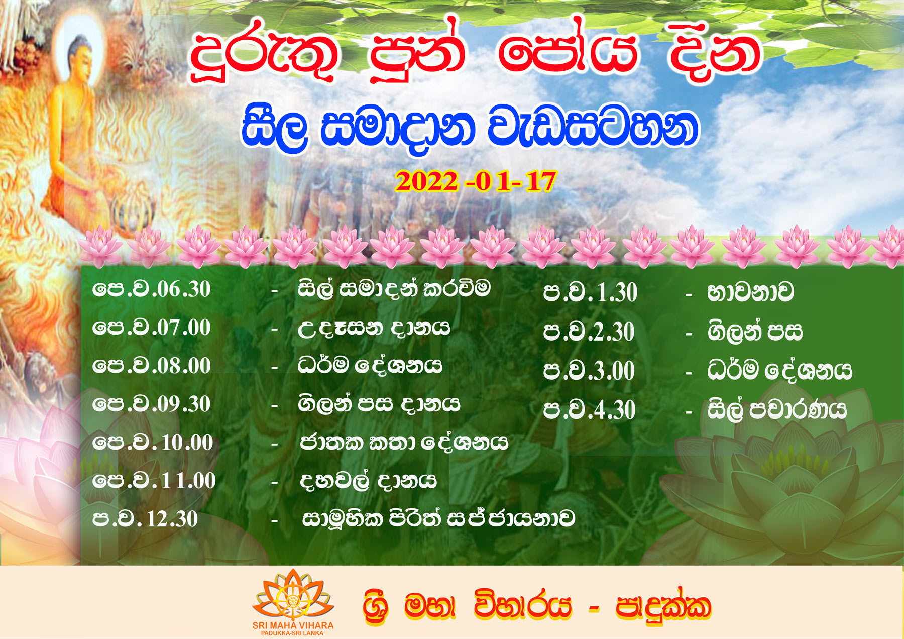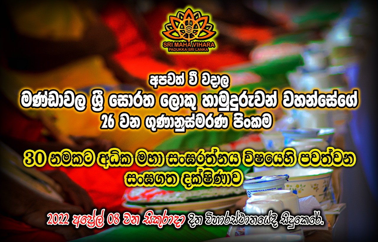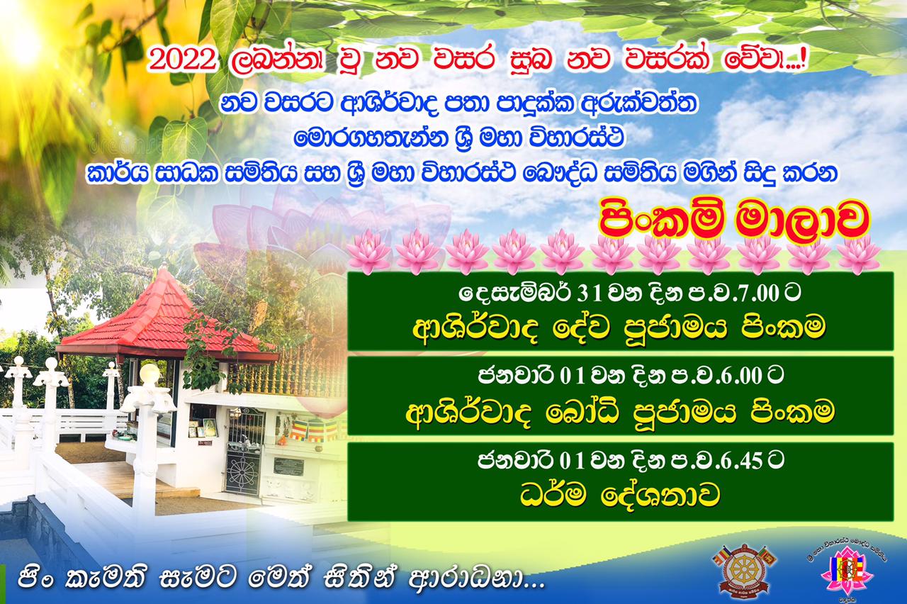 2022 නව වසරට ආශිර්වාද කිරීම සඳහා පාදුක්ක, අරුක්වත්ත, මොරගහතැන්න ශ්රී මහා විහාරස්ථ කාර්ය සාධක සමිතිය සහ බෞද්ධ සංගමය මගින් සිදුකරන පිංකම් මාලාව